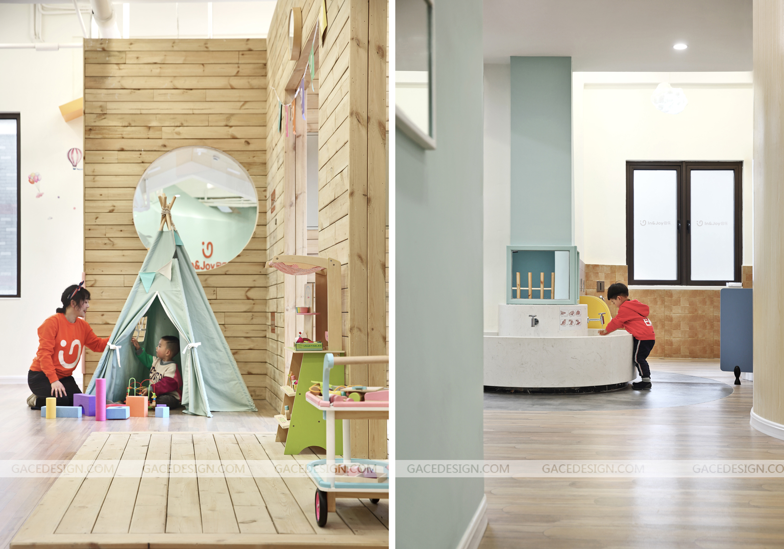 因樂(lè)國(guó)際兒童成長(zhǎng)中心(In&Joy International Children Center)隸屬于因樂(lè)教育咨詢(xún)有限公司,是一家國(guó)際早托教育品牌。因樂(lè)的教育理念源自于瑞吉?dú)W教育法和歐美先進(jìn)的早期教育體系,為1.5歲至4歲的孩子們提供安全、開(kāi)放、舒適的空間和國(guó)際先進(jìn)的教育課程,幫助孩子開(kāi)發(fā)最大潛能,啟發(fā)學(xué)習(xí)興趣,讓孩子智商情商雙重成長(zhǎng),進(jìn)而適應(yīng)這個(gè)快速變化的世界。設(shè)計(jì)將國(guó)際前沿的瑞吉?dú)W課程及啟蒙理念引入「In&Joy因樂(lè)」早托兒童成長(zhǎng)中心,希望孩子們?cè)诔砷L(zhǎng)空間中釋放天性、對(duì)話自然。對(duì)自然的探索是生命最初的本能,因此早托中心的設(shè)計(jì)核心在「園」,設(shè)計(jì)師嘗試用新中式理念為渙散的空間重新定義主語(yǔ)。