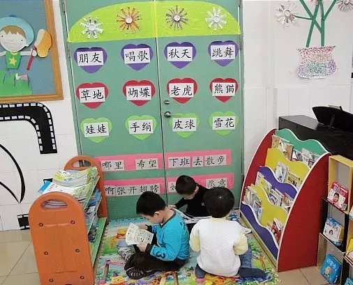 2.語言區(qū):主要功能是通過圖書、圖片、頭飾、手偶等的觀察、操作、拼擺等講述活動(dòng),發(fā)展幼兒的觀察能力和語言表達(dá)能力。