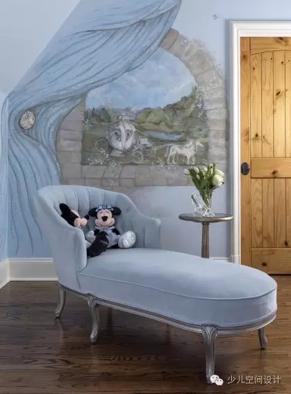 設計的壁畫,這與童話的主題,品味相輔相成,時尚典雅,讓人產生幻想的空間,從而解決了房間里面天花板和墻壁的問題。