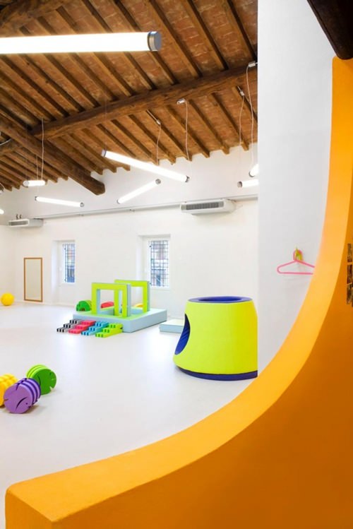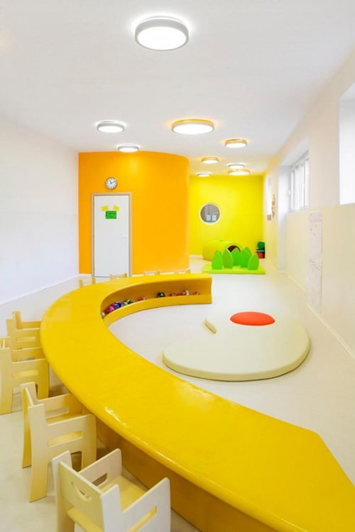小孩子比較喜歡跑跑跳跳,萬一跌倒了也是非常安全的,因為地面是軟的所以不會摔的很疼。設計師在進行早教機構設計的時候會充分的考慮到所有和安全相關的因素,把幼兒園的安全系數提升到最高。