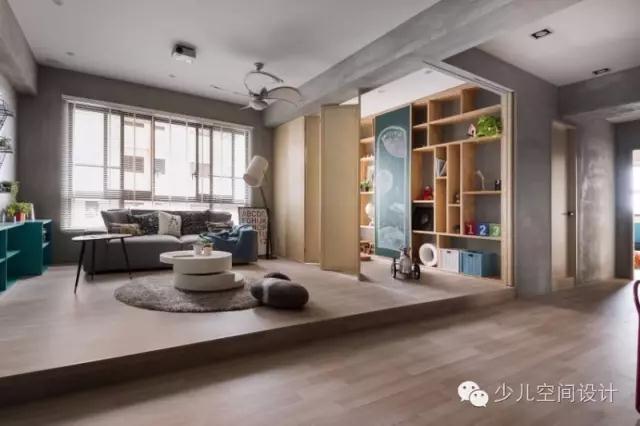 總是考慮三房?jī)蓮d,不如少一房作為彈性使用;加大的公領(lǐng)域有一架高、類似和室的空間,那裡是電視僅作為輔的客廳,并以拉門(mén)稍微間隔出孩子也能在一旁玩耍的共同區(qū)域,讓大人與小孩的互動(dòng)空間更大,家人的也關(guān)系更緊密了。