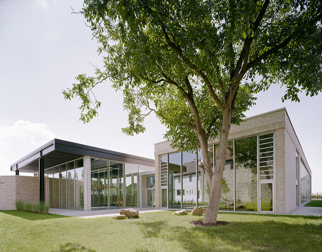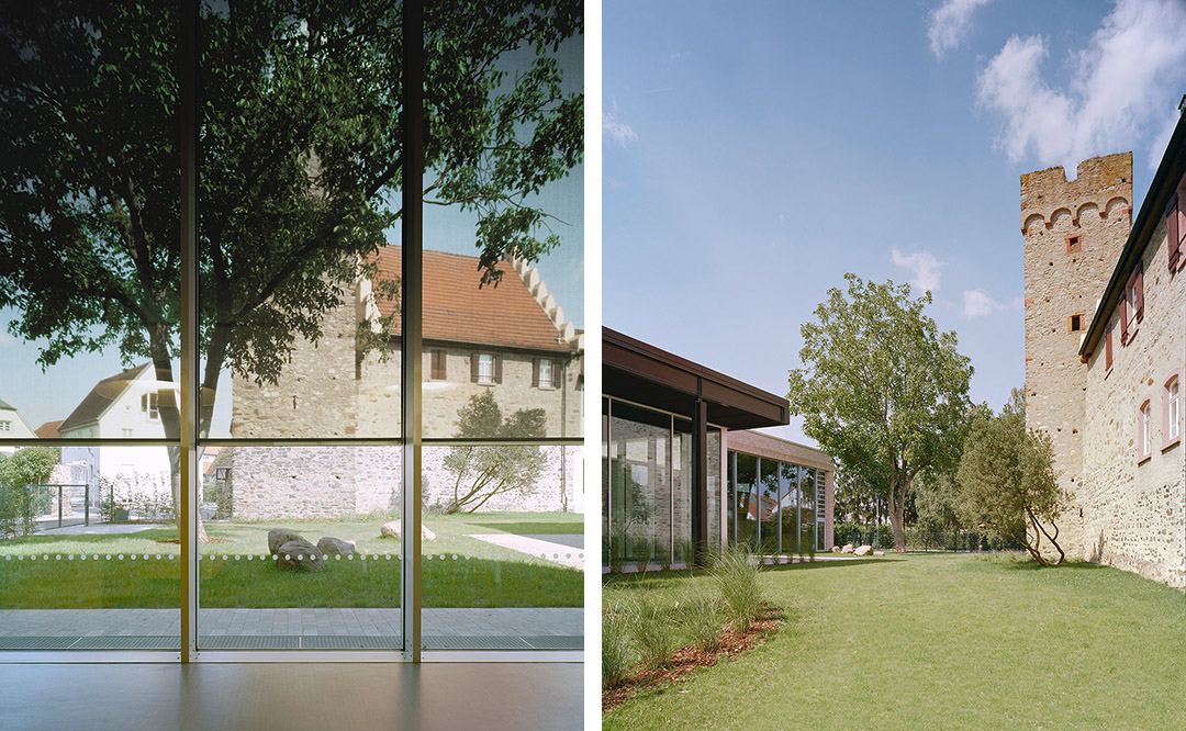 在古老的城墻邊上建有一座幼兒園,這所以混凝土和明黃色搭配的幼兒園高雅而又不失活力,雙翼構造環抱住室外庭院,而大面積的落地玻璃窗讓室外美景滿滿映入眼簾,建筑師在做建筑的時候也采取了對歷史的尊重,外觀選擇了磚飾面。