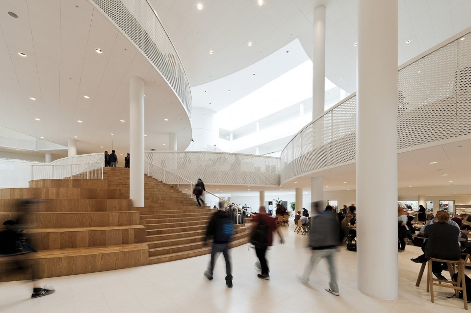 位于丹麥Odense城市中心的成人教育中心現(xiàn)已落成。這座位于中心車站附近的HF & VUC Fyn綜合體的建成,標(biāo)志著連接內(nèi)城和海港的新城市公園項(xiàng)目離建成又邁出了重要一步。建筑師將從粗野環(huán)境中提取的工業(yè)元素融入到建筑之中,與其內(nèi)部開放兼容的空間組織相結(jié)合,將海港與城市生活真正連接到一起。建筑樸素的外觀與內(nèi)部變幻多樣的圓形元素形成了強(qiáng)烈的對比,為1300位學(xué)生創(chuàng)造了多樣化的學(xué)習(xí)環(huán)境 – 一所使用方式靈活多樣,同時(shí)也為個(gè)人學(xué)習(xí)提供充足空間的綜合學(xué)校建筑。