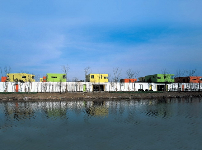 上海青浦新城區的夏雨幼兒園,青浦是上海的幾個衛星城鎮,是保留著江南水鄉民居的區縣之一,青浦新城區是在一片農田上面建設起來的和老城區有著一段距離,因此幼兒園所在的地方周圍一片空曠,沒有傳統的城市感受。