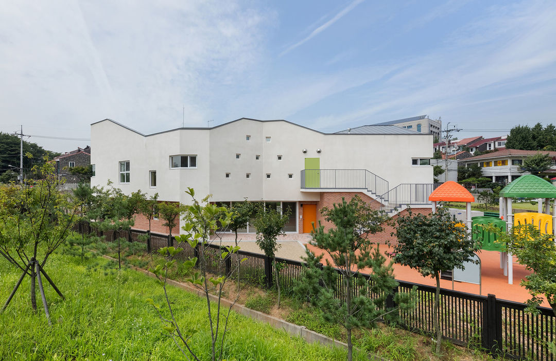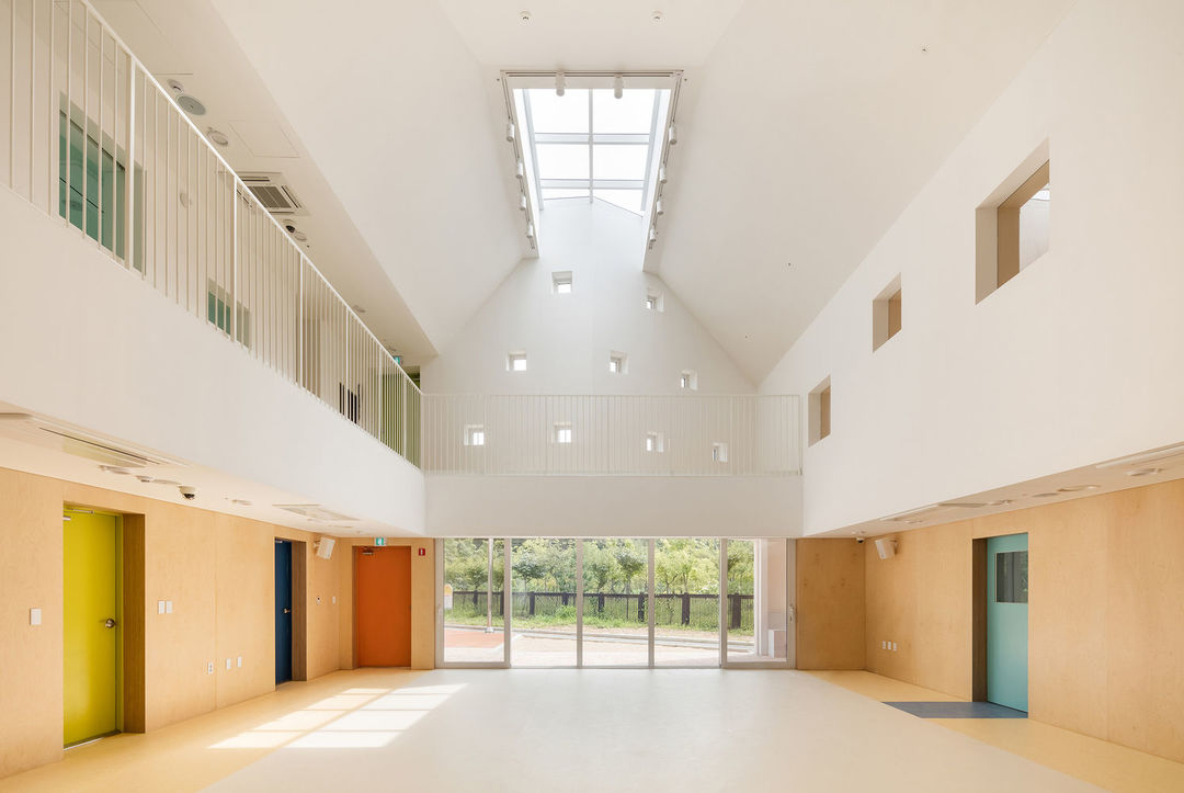 這是一家在韓國首爾的幼兒園,外觀上最明顯的標志是不規則的屋頂,雖然還是用的青瓦,它的起伏和轉折并不連貫,倒像是將不同幢房子拼在一起了。每一個房間都只有一種顏色,但光線和轉折的墻面讓每個房間都非常獨特,越來越多的幼兒園融入了設計者對于早期教育的想法。有的放任玩耍,寓教于樂,也有通過建筑設計來影響兒童的世界觀。