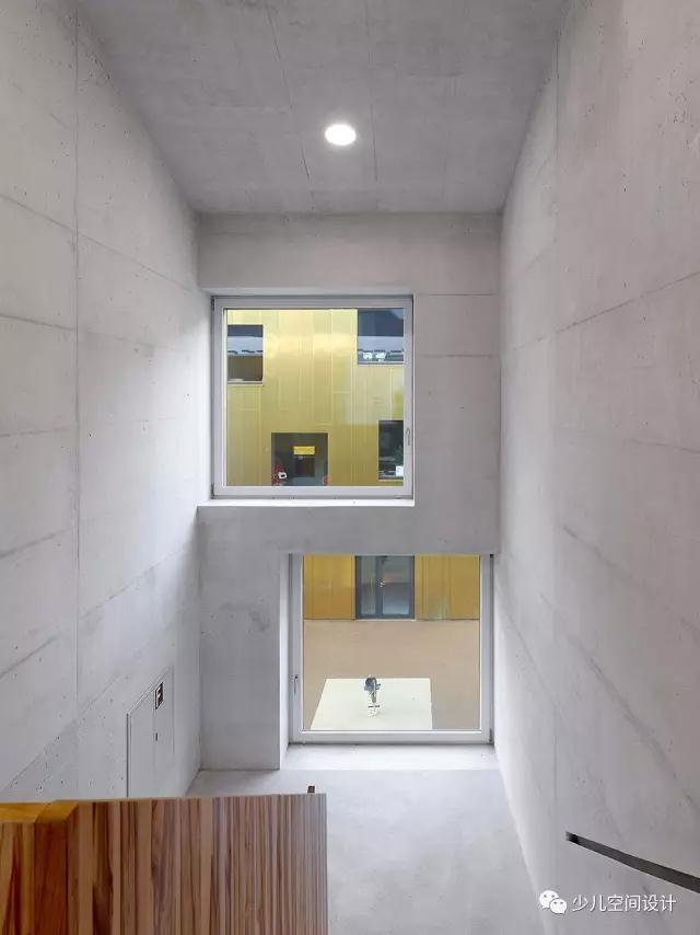 窗戶的排列方式充滿了趣味性,在滿足了空間要求的前提下,使立面動感活潑。一些窗戶可以當做凹窗供兒童使用。