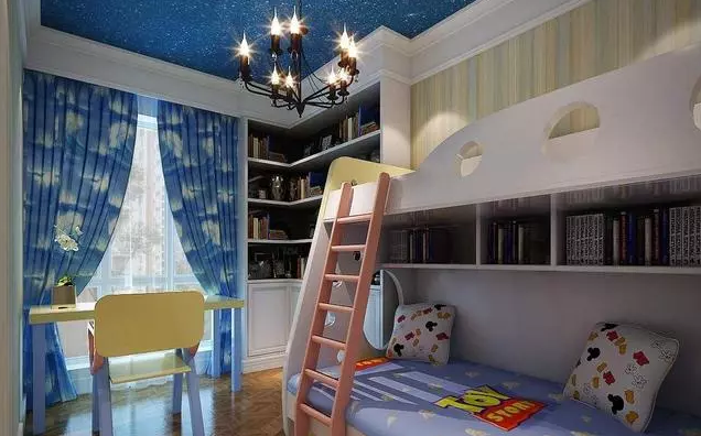如果你家的孩子是兄弟倆,或者是姐妹倆,亦或者是雙胞胎,那兩張小床就是不能少的。此時(shí)子母床便是一個(gè)不錯(cuò)的選擇,既可以滿足居住需求,又不會(huì)占據(jù)太大的位置,但一定要在床邊安裝床欄,這樣可以讓孩子更有安全感,也更具有安全性。我們也可以在床邊的墻上,可以貼些兒童畫片,突出兒童天真爛漫的特點(diǎn),使孩子感到親切、溫暖。