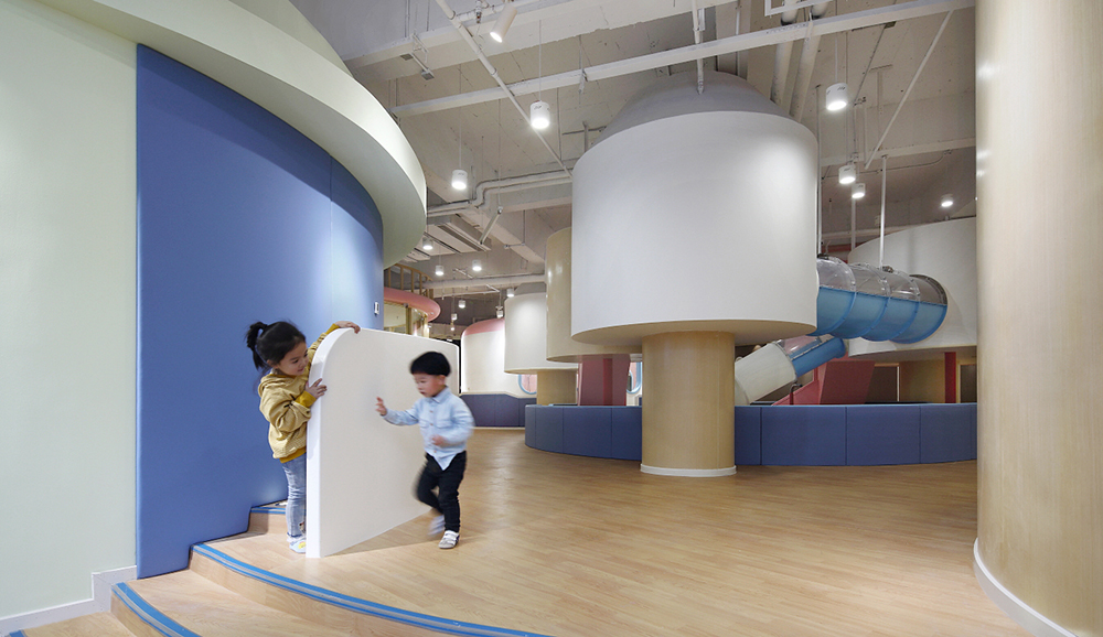 游戲是孩子的活力之源,也是孩子通往世界的途徑。設(shè)計師將游樂區(qū)布局在室內(nèi)的中心位置,讓孩子的歡聲笑語激活整座“城”。孩子們會帶著好奇和期待爬上梯子,穿過可愛的小木屋,在管道中匍匐前進,然后“咻”地一下滑入下沉的球池,在不斷變化動作和愉悅的體驗中獲得身心的鍛煉和能力的發(fā)展。