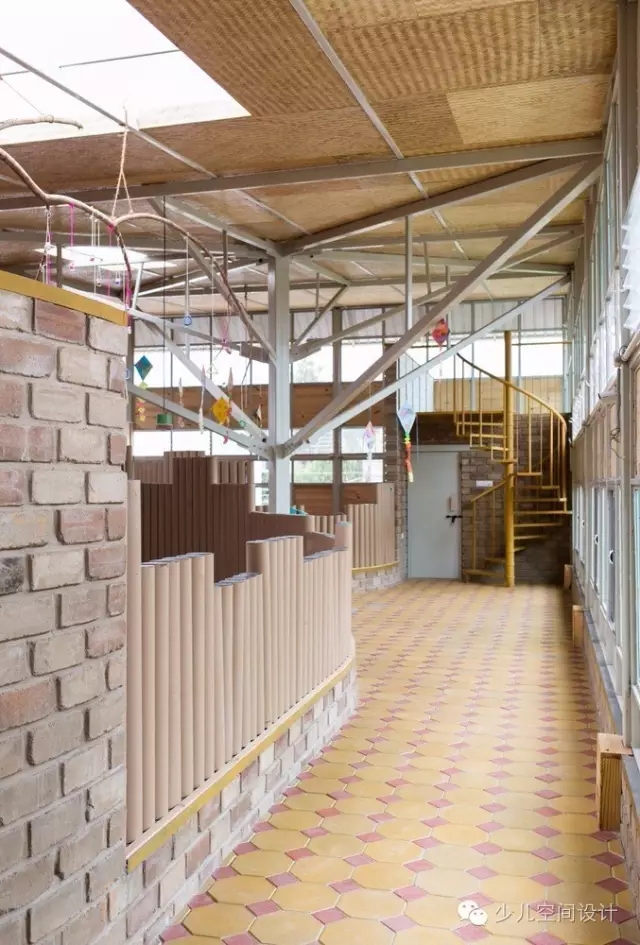學(xué)校位于一處不斷建設(shè)中的街區(qū),挨著一個倉庫。在這樣的場地里為年輕人創(chuàng)建一處學(xué)習(xí)空間需要學(xué)校有著良好的封閉性。場地因素左右著設(shè)計,作為該校基礎(chǔ)的 Reggio-Emilia 式教育方式(雷焦艾米利亞模式是一種鼓勵幼兒創(chuàng)造力的教育模式)也對設(shè)計起了很大的影響作用。